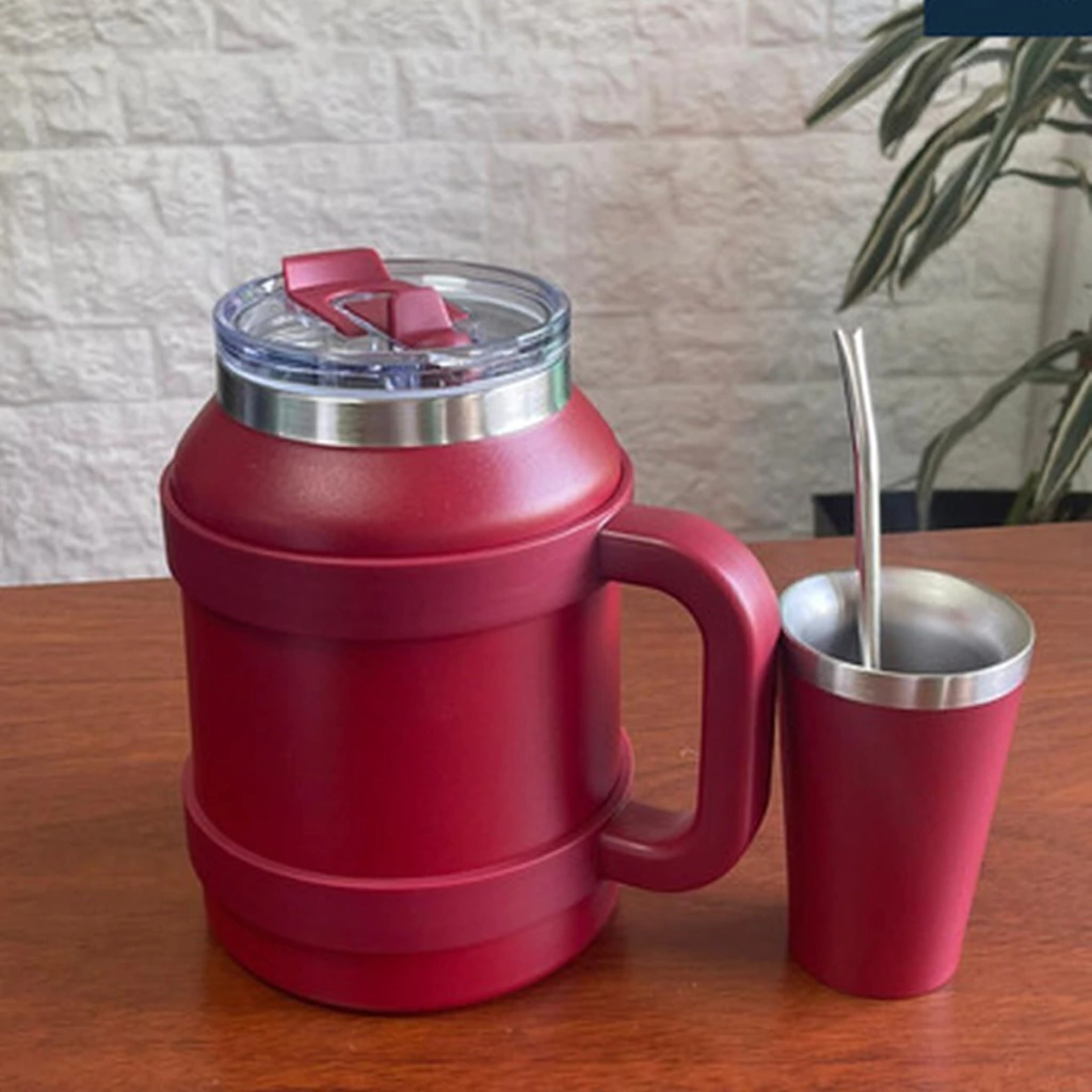 El termo de 1.9 litros de aluminio pintado es ideal para disfrutar mate caliente o tereré en cualquier momento. Incluye mate ofreciendo un set completo listo para usar. Su diseño liviano, resistente y cómodo lo convierte en el compañero perfecto para el trabajo, viajes, paseos o el hogar. Cuenta con tapa a rosca con vertedor práctico y manija lateral para un transporte fácil y seguro.
